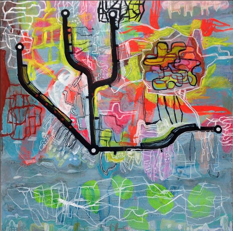 L’artiste trace des chemins, des ponts, des lignes de tram entre ses différents quartiers, crée des connexions afin de brosser une polyphonie urbaine. Il réinterprète les choses qu’il a vues ou vécues dans la ville, comme Paris, New-York, Londres, ou cité imaginaire. Émotions, rencontres, expériences sensorielles, graffitis, publicité, lumières…autant de traces dont l’artiste traduit les empreintes mentales. Il invite à circuler dans ses mind maps où se retrouvent foisonnement urbain, déplacement du regard, éclaboussures de couleurs et de formes. Avec plus de 35 années de vie artistique, Ross Gash a exposé dans plusieurs pays et a reçu de nombreux prix.