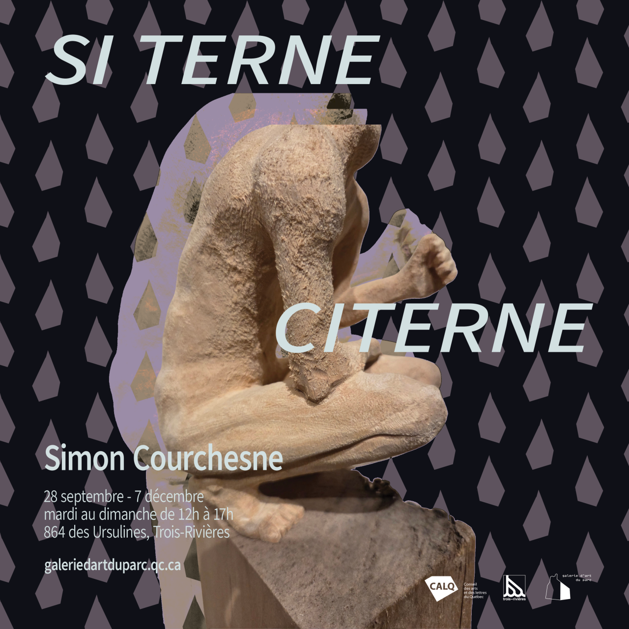 Si terne citerne est une proposition qui se déploie dans plusieurs médiums : taille directe sur tilleul, impression 3D et peinture numérique. Chaque pièce aborde différentes facettes du même thème : le deuil. Pas exactement ce qu’il y a de plus léger comme sujet. Pourtant, cette exposition semble dégagée une certaine légèreté, un certain ludisme qui adouci les rebords de ce sujet incisif. Le corpus intègre abondamment l’imagerie de l’homme-citerne, un personnage tiré de la mythologie personnelle de l’artiste. Doté d’un corps humain surmonté d’une tête en forme de récipient, cette étrange créature agit comme une métaphore de ceux qui ne pleurent jamais, ceux qui accumulent jusqu’au moment où la pression est trop grande ; jusqu’à la larme qui fait déborder le vase. L’ensemble de l’exposition est également inspiré des cinq étapes du deuil : déni, colère, marchandage, dépression, acceptation. Empreintes du vécu de l’artiste, elles parlent de la traversée du deuil parental. Si terne citerne invite à poser un regard doux sur la résilience. C’est un univers où l’absurde côtoie la profondeur, où l’œil rieur peut devenir mouillé.