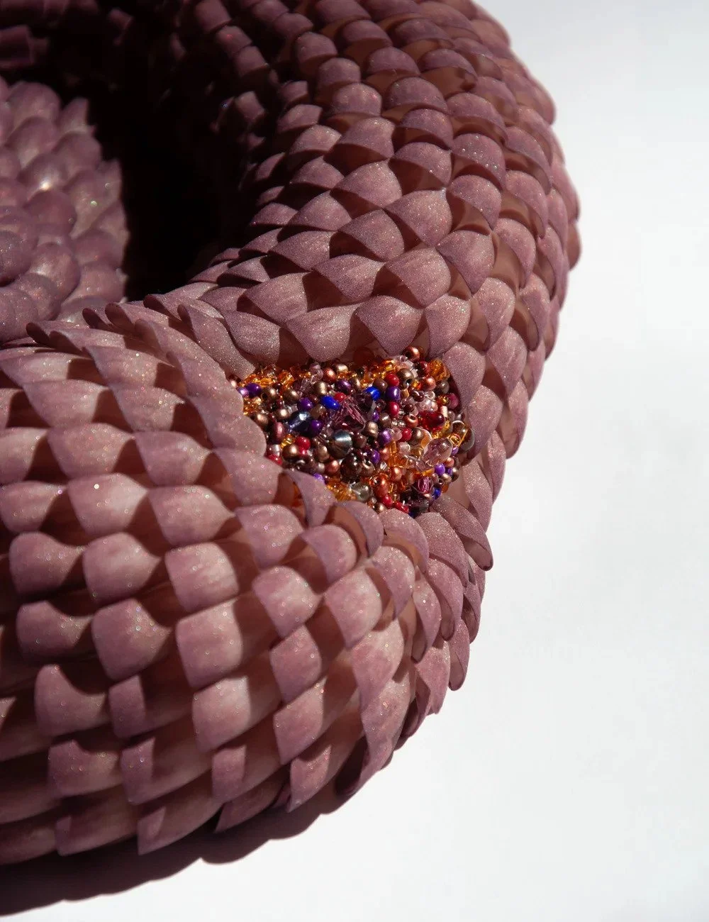 Janna opère graduellement un virage vers des œuvres sculpturales percutantes. Façonnant des serpents recouverts de milliers d’ongles artificiels, ou des ecchymoses formées d’une surdose de perles, elle y explore les mécanismes par lesquels l’humain présente son meilleur jour en public et cache ses vulnérabilités, et ce qui s’opère de grandiose lorsqu’on révèle notre souffrance intérieure.